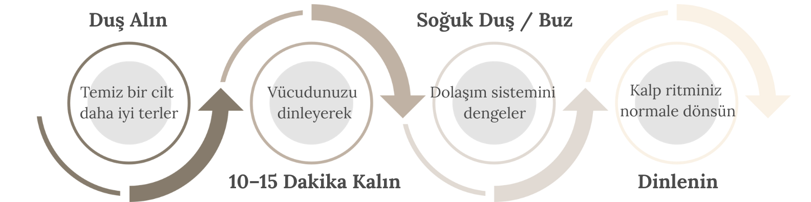Evet; önce ılık duşla teri arındırmak, ardından kısa soğuk duş/soğuk uygulama ve dinlenme dolaşımı dengelemeye yardımcı olur.